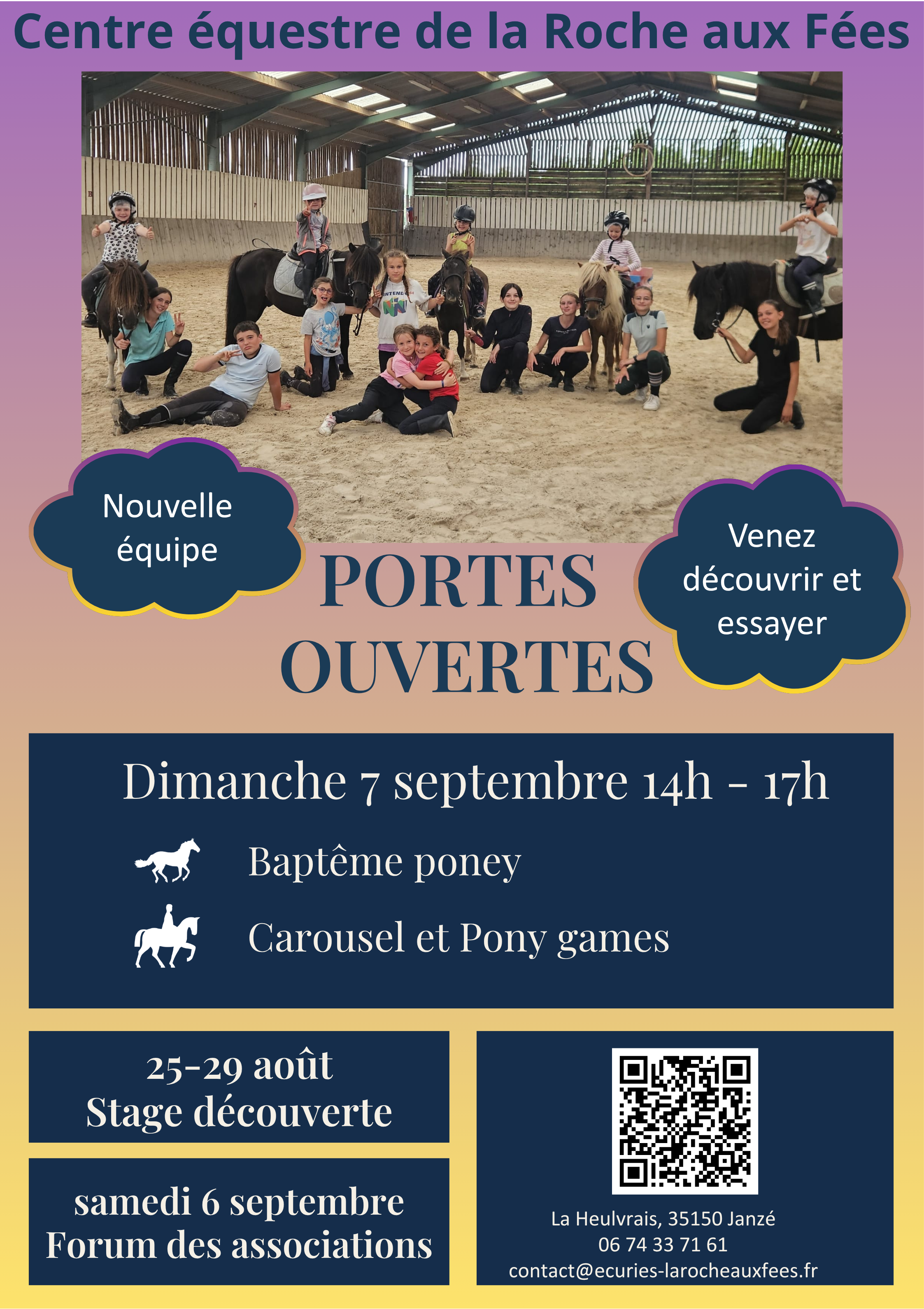 Venez nous retrouver le dimanche 7 Septembre de 14h à 17h pour les portes ouvertes du centre équestre